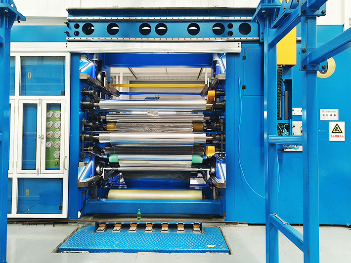 分切生产线:配备12台铝箔立式分切机:其中1台德国阿亨巴赫分切机;1台德国康普立式分切机;1台英国MIDI立式分切机,10台涿神分切机。通过开卷、导辊、卷取装置,利用张力控制调节系统,将宽幅铝箔切成不同宽度的铝箔卷材,分切机还配置了针孔检测仪(精度20µm)与表面检测仪(精度50µm),生产最大速度800米/分,可以有效提高卷材质量及产量。