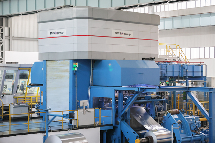 冷轧生产线:引进一台西马克 1900mmCVC6 辊单机架不可逆冷轧机,为箔轧工序提供优质坯料,采用高精度 6 辊 CVC-plus® 技术和全球领先的边部电磁加热系统,是国内首条采用电磁加热系统控制板型的冷轧机。前后装有自动测厚和板型控制系统,轧机各部位配合精度高、响应速度快,轧制最高速度达到 1500 米 / 分,年生产能力9万吨。同时配备1台德国赫格里斯高精度轧辊磨床,1台重卷机。