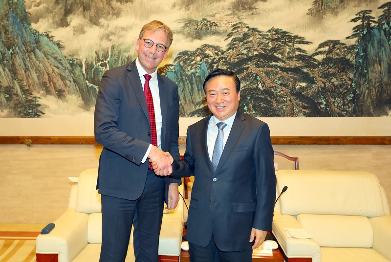 中国五矿副总经理焦健、朱可炳出席会见,相关总部部门及直管企业有关负责人参加会见。