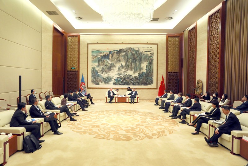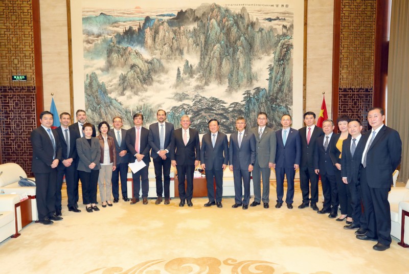 中国五矿副总经理焦健、朱可炳出席会见。相关总部部门及直管企业有关负责人参加会见。