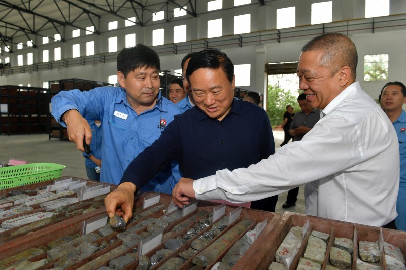 翁祖亮先后深入水口山铅锌矿、康家湾矿、康家湾矿技术升级改造项目建设工地、临时岩芯库调研,现场听取水口山公司有关情况汇报,详细了解企业生产经营、资源接续、安全生产和重点项目建设情况。