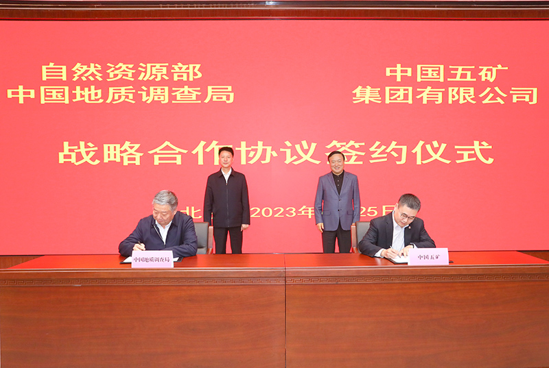 中国五矿与中国地质调查局4月25日签署战略合作协议。中国五矿党组书记、董事长翁祖亮与自然资源部党组成员,中国地质调查局局长、党组书记李金发举行工作会谈并共同见证。