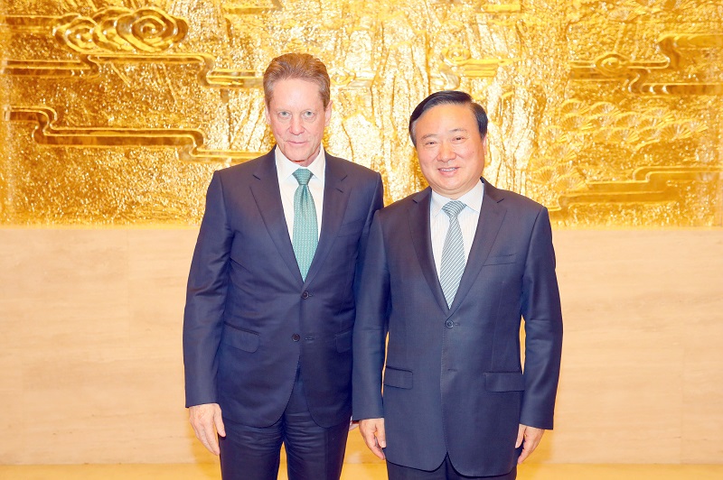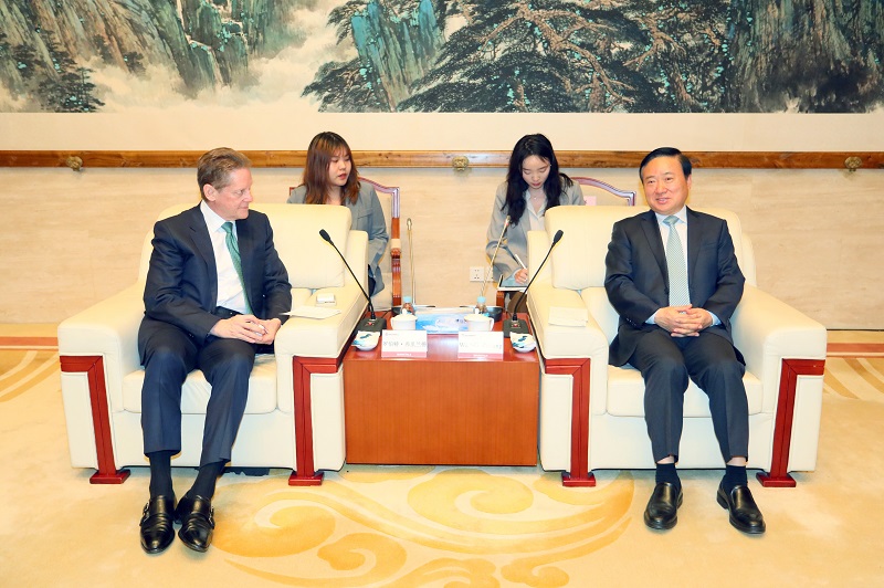 中国五矿副总经理朱可炳出席会见,相关总部部门及直管企业有关负责人参加会见。