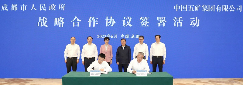 中国五矿与成都市人民政府6月6日签署战略合作协议。中国五矿党组书记、董事长翁祖亮与四川省委常委、成都市委书记施小琳,市委副书记、市长王凤朝出席签约仪式。