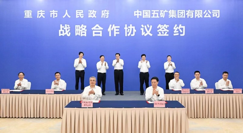 6月9日,中国五矿与重庆市人民政府签署战略合作协议。中国五矿党组书记、董事长翁祖亮与中共中央政治局委员、重庆市委书记袁家军,重庆市委副书记、市长胡衡华共同见证并举行工作会谈。