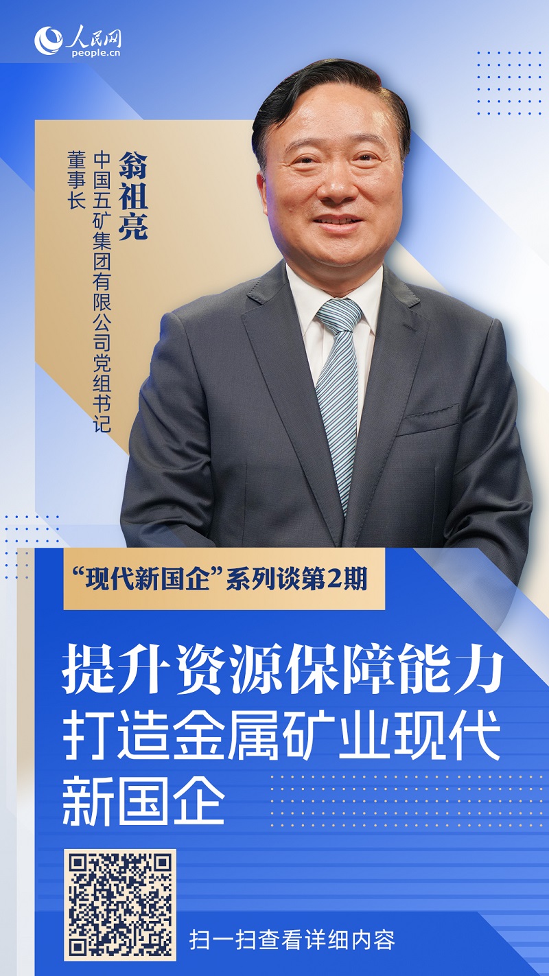中国五矿党组书记、董事长翁祖亮7月27日接受人民网“现代新国企”节目访谈,围绕“提升资源保障能力,打造金属矿业现代新国企”主题同网民在线交流。