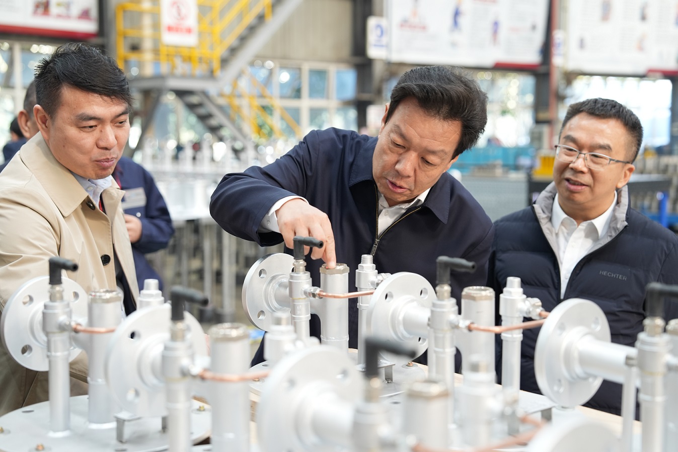 陈得信先后来到中冶南方生产调度指挥中心、智能制造实验室、热工产品制造基地、工业电气控制技术创新中心及制造基地,中国一冶企业展厅、数字运营指挥中心,中冶武勘数字赋能中心、分析中心、徐凡工匠创新工作室等地调研,详细询问企业生产经营、科技创新、数字化企业大脑建设及党建文化工作等方面情况,并对三家企业聚焦主责主业、深耕优势领域、以科技创新驱动企业高质量发展取得的成效给予肯定。