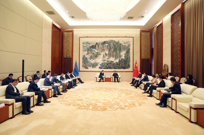 陈得信欢迎吴磊一行的到访,并简要介绍中国五矿基本情况。他指出,70余年来,中国五矿紧紧围绕国家战略发展需要挺膺担当、变革突破,实现了从外贸型企业向金属矿产企业集团转型的跨越式发展。中国五矿始终以习近平新时代中国特色社会主义思想为指导,深入学习贯彻党的二十届三中全会精神和中央企业负责人会议精神,加快推动金属矿产、冶金建设、科技产业、贸易物流、地产金融等业务体系转型升级,牢牢把握科技创新这一推动高质量发展的强劲引擎,加快培育新质生产力,持续为保障国家金属矿产资源供给与安全贡献力量。希望中国五矿与上海电气在已有的良好合作基础上,进一步聚焦主责主业,发挥各自的专业特长和比较优势,在新能源新材料、装备制造、工程设计施工、产融结合等领域,加强业务对接,拓展合作的深度广度,不断推动双方高质量协同共赢发展。