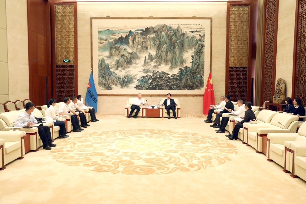 5月19日下午,中国五矿党组书记、董事长陈得信会见了来访的甘肃省酒泉市委副书记、市长唐培宏一行,双方就进一步加强央地合作进行深入交流。