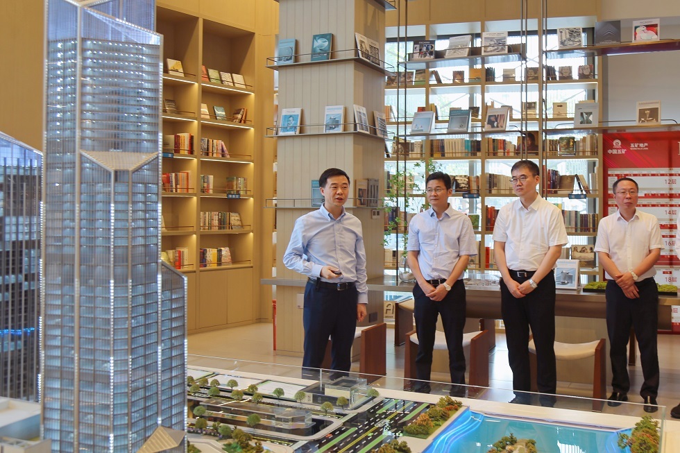 在长沙五矿广场项目,朱可炳、曹志强现场了解项目区位优势、设计理念、商业业态、建设进度和企业招商入驻等情况,强调要发挥项目对提升城市品牌形象、推动区域经济发展的重要作用,高标准、高质量推进项目建设和运营,更好打造区域商业标杆。